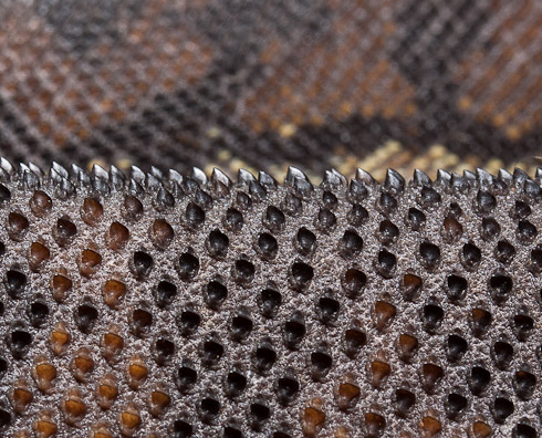 Their other common name “file snake” comes from the fact that their scales don’t overlap but actually poke out from the skin in sharp pyramid-shapes that help them grasp their fishy prey. In between these scales are sensory tubercles that allow the snakes sense their prey in murky water.