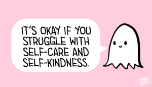 Drawing of a ghost saying “It’s okay if you struggle with self-care and self-kindness.” the-skull-is-a-friend October 2, 2018 Published by the-skull-is-a-friend help View all posts by the-skull-is-a-friend Published October 2, 2018