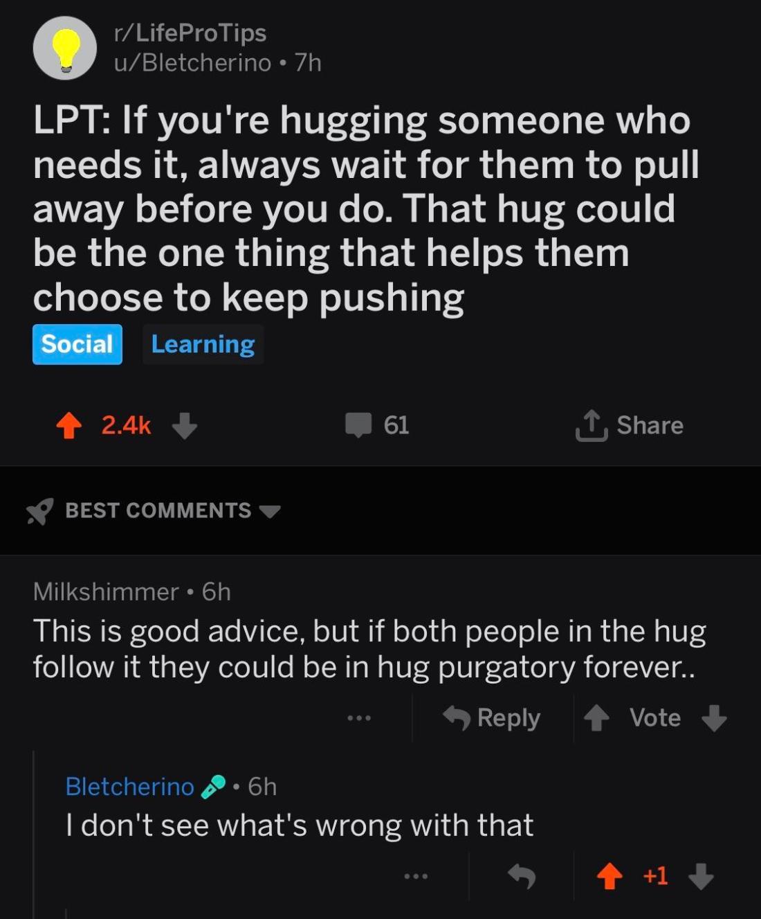 the-skull-is-a-friend Uncategorized November 7, 2018December 18, 2018 1 Minute positive-memes: The more hugs the better Source: positive-memes Share this: Share on X (Opens in new window) X Share on Facebook (Opens in new window) Facebook Like Loading... Related Published by the-skull-is-a-friend help View all posts by the-skull-is-a-friend Published November 7, 2018December 18, 2018