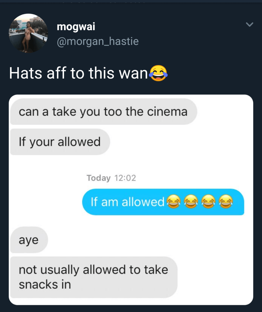 the-skull-is-a-friend Uncategorized November 8, 2018December 18, 2018 1 Minute arandomthot: Going to have to remember that line Source: twitter.com Share this: Share on X (Opens in new window) X Share on Facebook (Opens in new window) Facebook Like Loading... Related Published by the-skull-is-a-friend help View all posts by the-skull-is-a-friend Published November 8, 2018December 18, 2018
